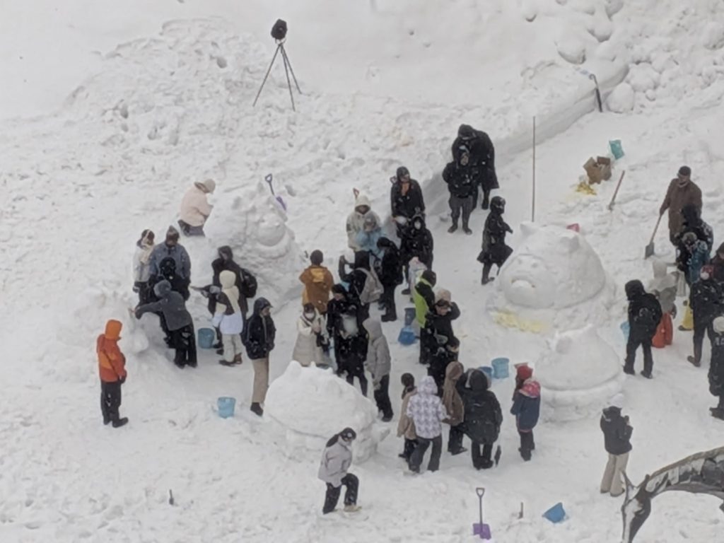 美術・工芸部門で、あきたぽの雪像を作成しました!